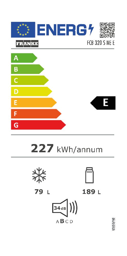 FRANKE FCB 320 V NE D (118.0722.592) ΕΝΤΟΙΧΙΖΟΜΕΝΟΣ ΨΥΓ/ΚΤΗΣ ΕΝΕΡΓΕΙΑΚΗ ΚΛΑΣΗ D, ΚΩΔ.3184101036, 260LT ΧΩΡΗΤΙΚΟΤΗΤΑ, Υ177xΠ54xΒ54.5cm