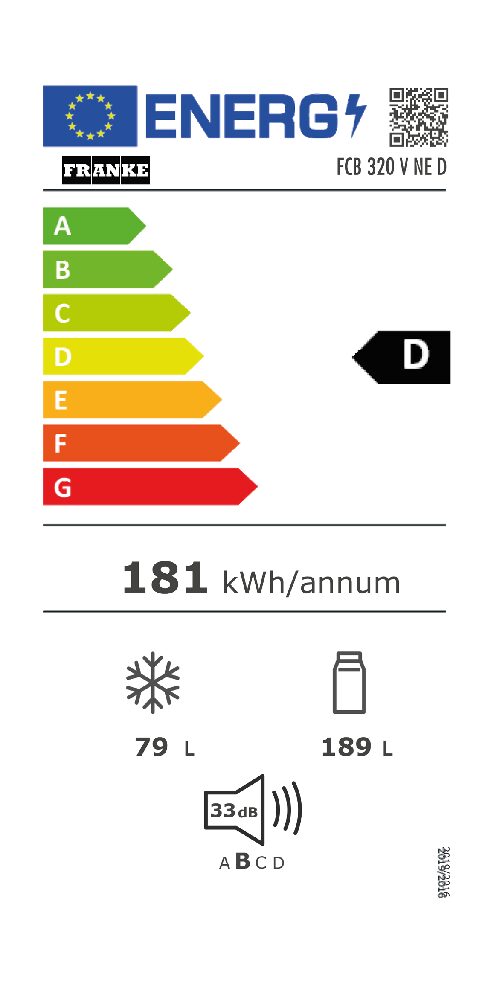 FRANKE FCB 320 V NE D (118.0722.592) ΕΝΤΟΙΧΙΖΟΜΕΝΟΣ ΨΥΓ/ΚΤΗΣ ΕΝΕΡΓΕΙΑΚΗ ΚΛΑΣΗ D, ΚΩΔ.3184101036, 260LT ΧΩΡΗΤΙΚΟΤΗΤΑ, Υ177xΠ54xΒ54.5cm